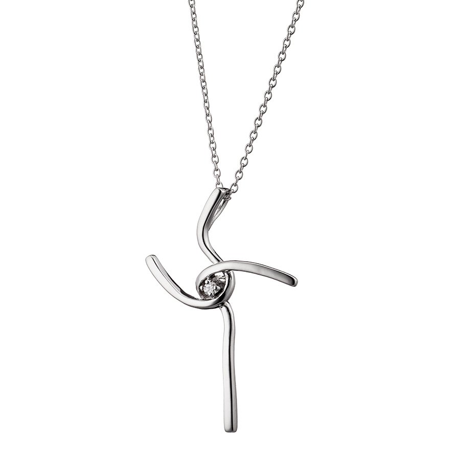 Oxzen κολιέ σταυρός ασημένιος με ένα λευκό ζιργκόν στο κέντρο