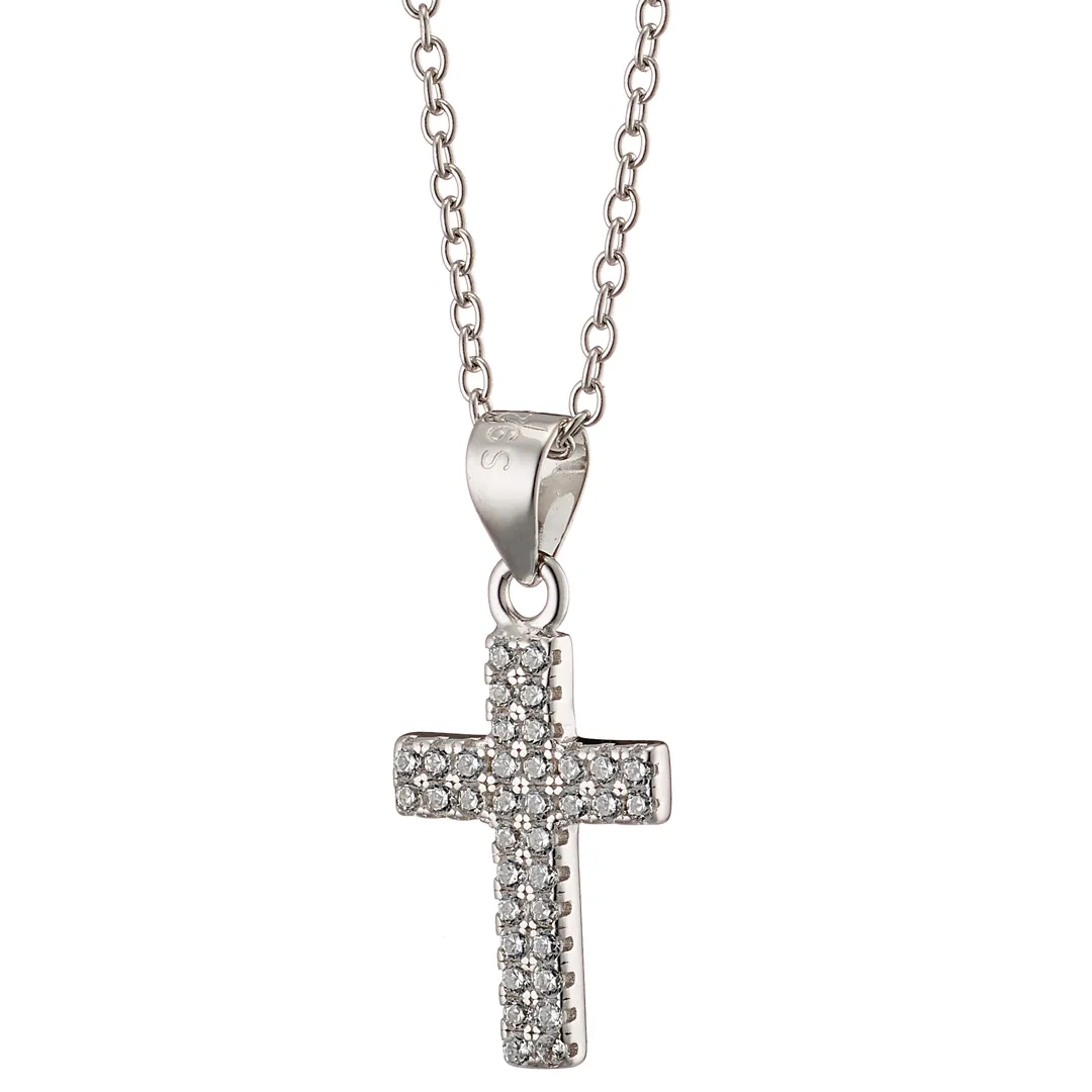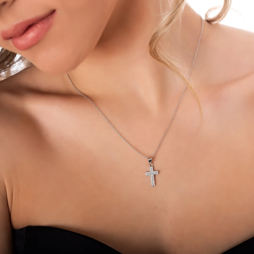 Oxzen κολιέ σταυρός ασημένιος με λευκά ζιργκόν