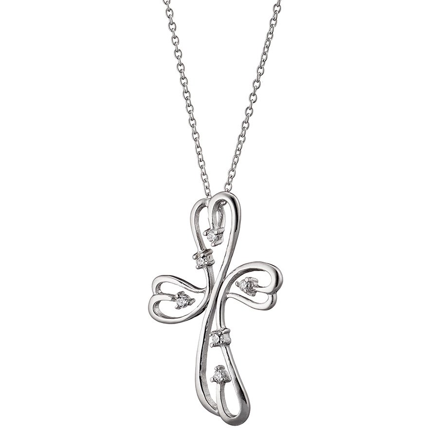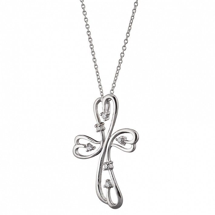 Oxzen κολιέ σταυρός ασημένιος πλεκτός με λευκά ζιργκόν
