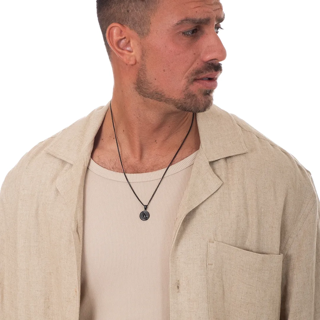 Κολιέ ατσάλι πλακέτα μαύρη