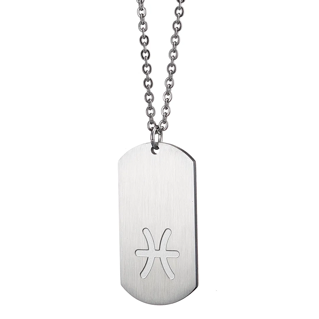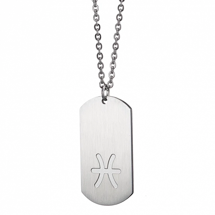 Oxzen κολιέ Unisex Zodiac ατσάλινο ματ ζώδιο Ιχθύς (Pisces)