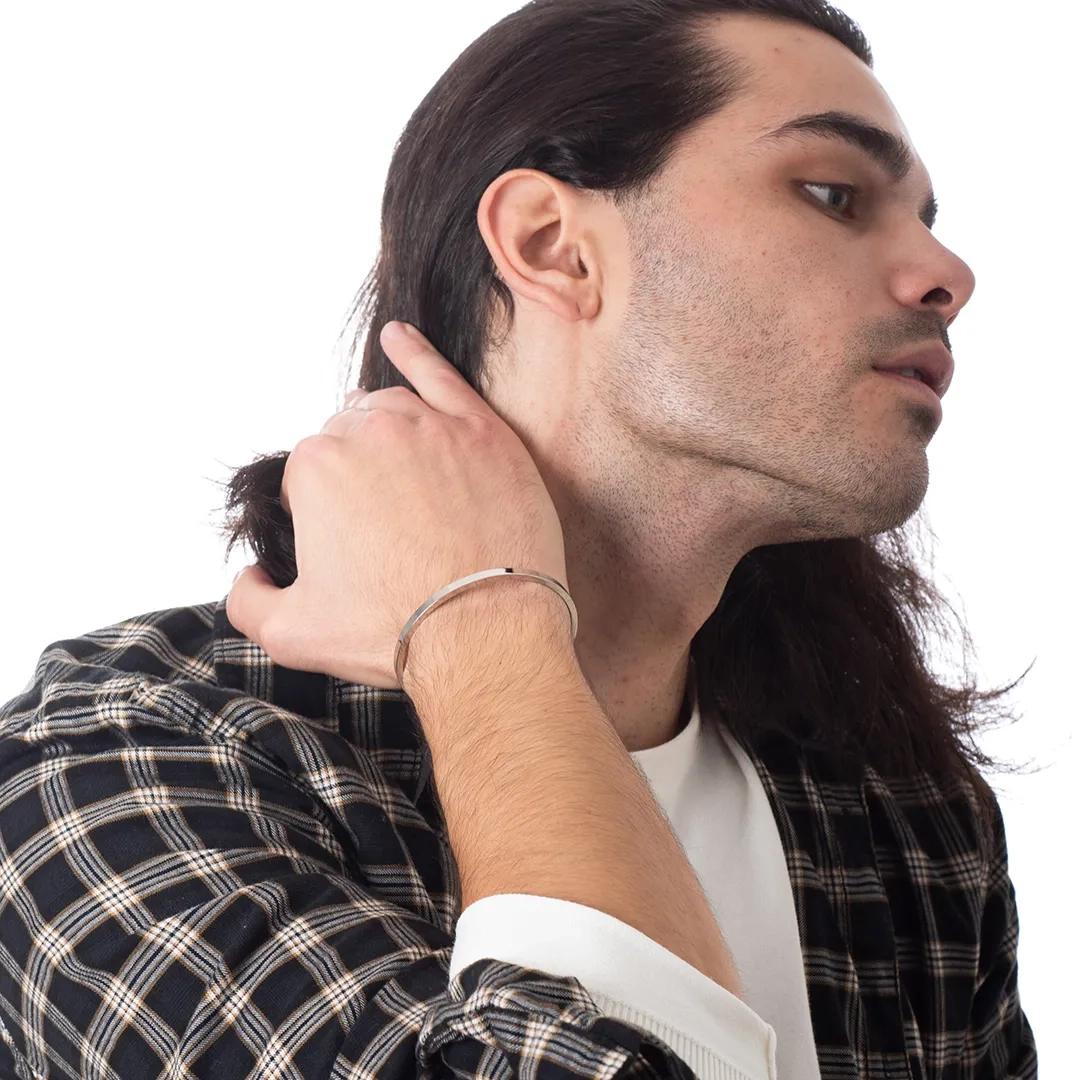 Χειροπέδα ανδρική ατσάλι σε ασημί με μαύρο