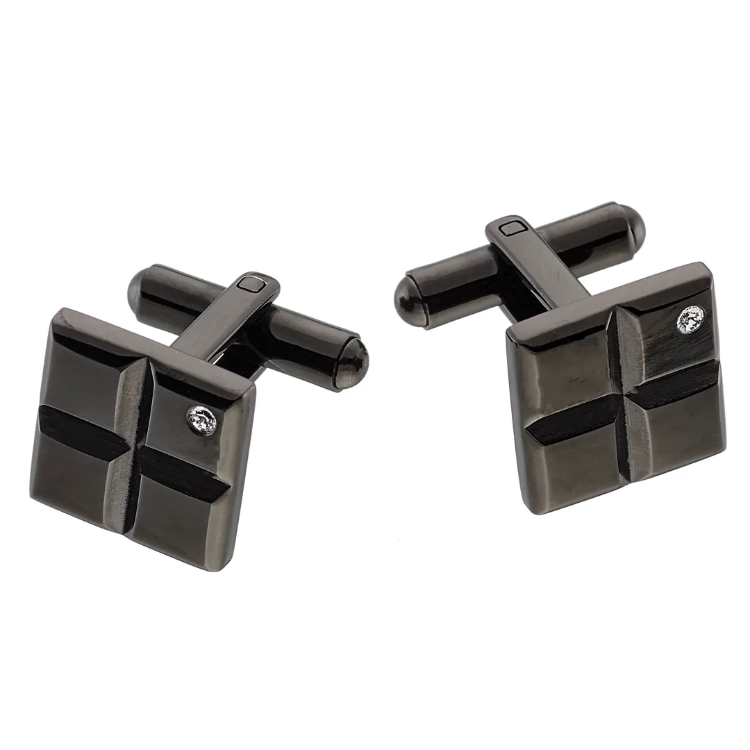 Oxzen μανικετόκουμπα ατσάλινα ασημί με λευκό ζιργκόν