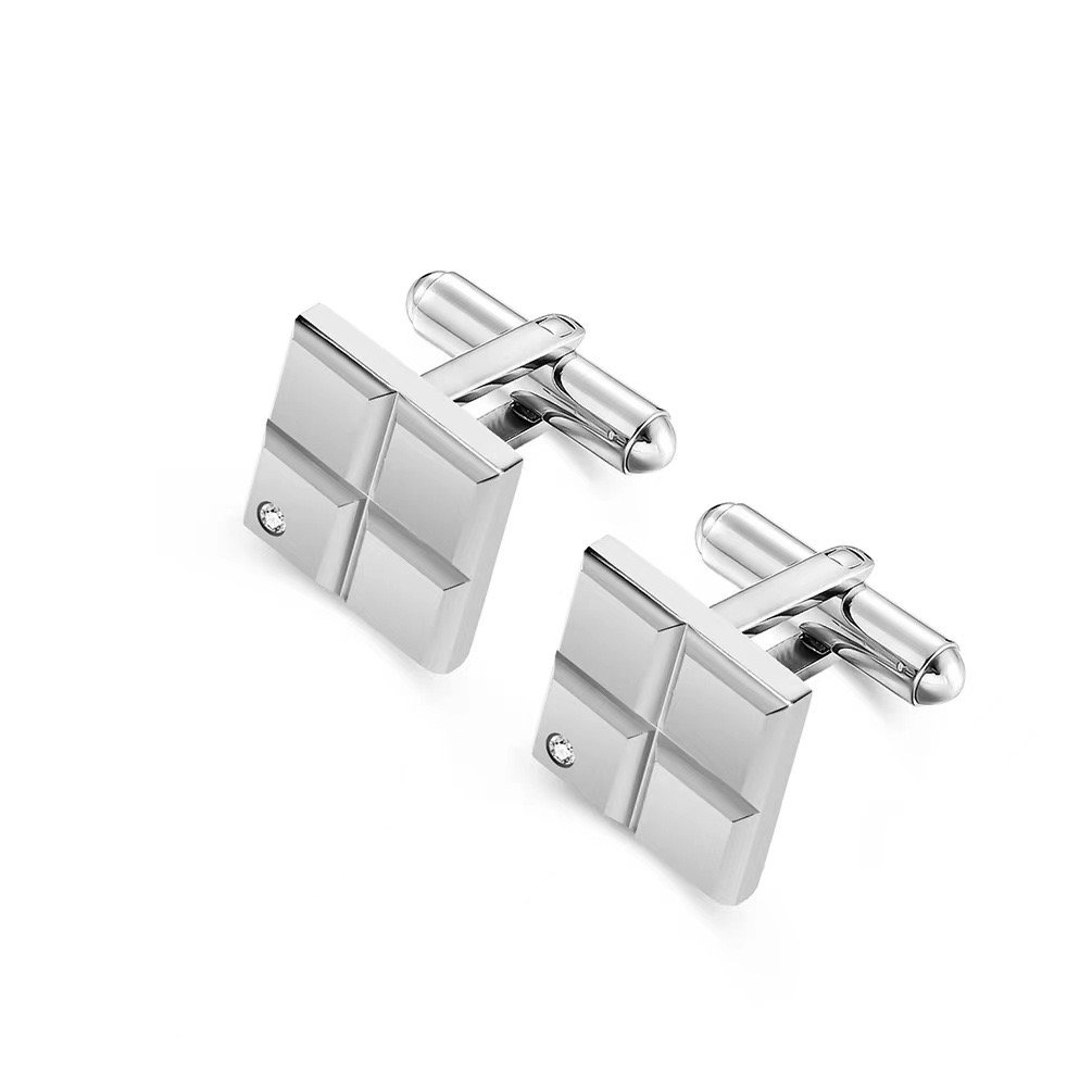 Oxzen μανικετόκουμπα ατσάλινα ασημί με λευκό ζιργκόν
