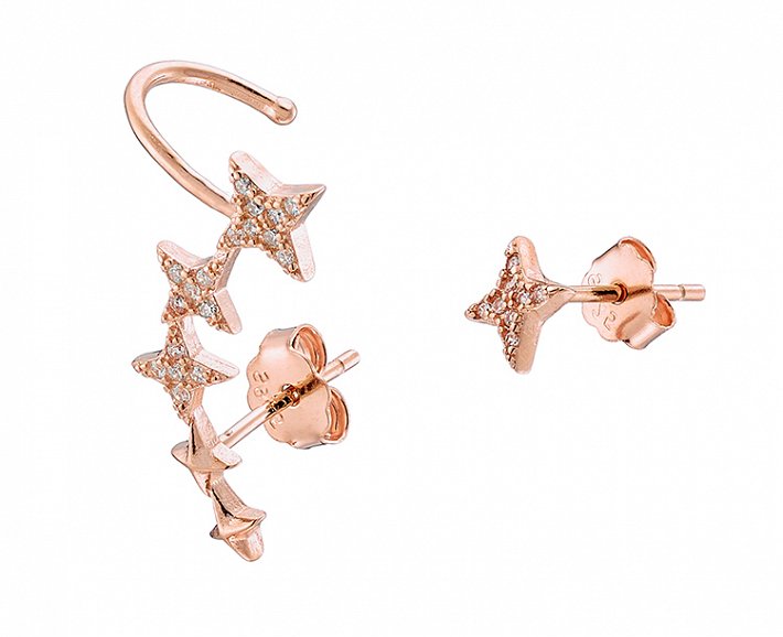 Oxzen σκουλαρίκι ασημένιο Ear climber με λευκά ζιργκόν