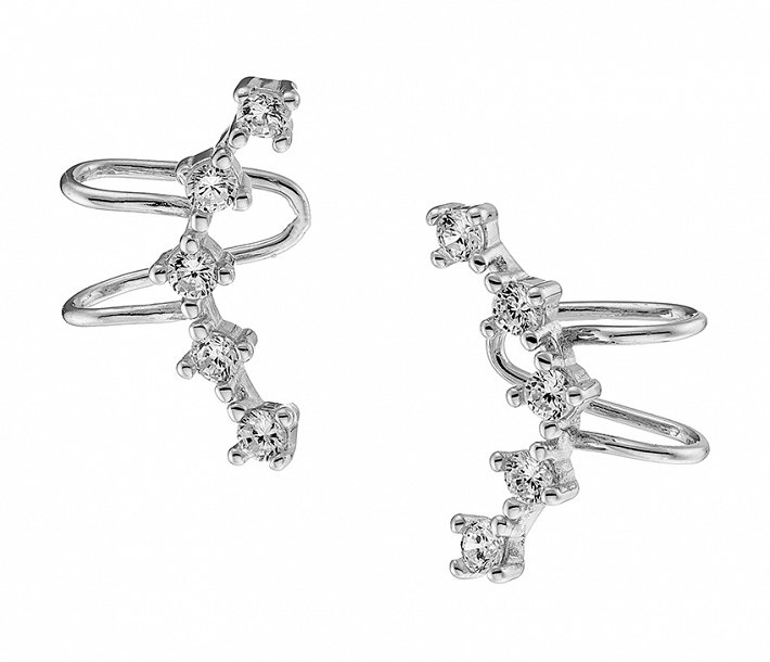 Oxzen σκουλαρίκι ασημένιο ear climber με λευκά ζιργκόν