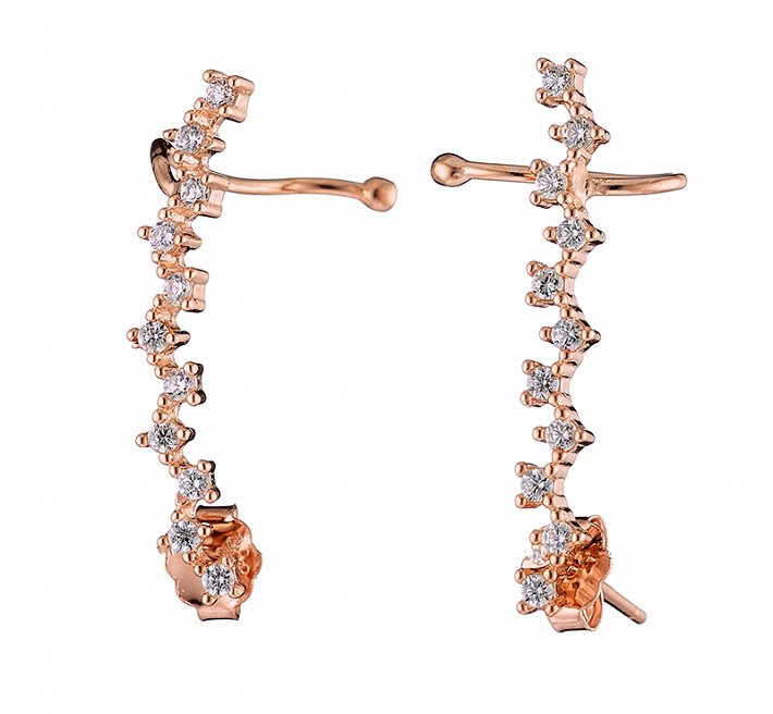 Oxzen σκουλαρίκι ασημένιο ear climber με λευκά ζιργκόν