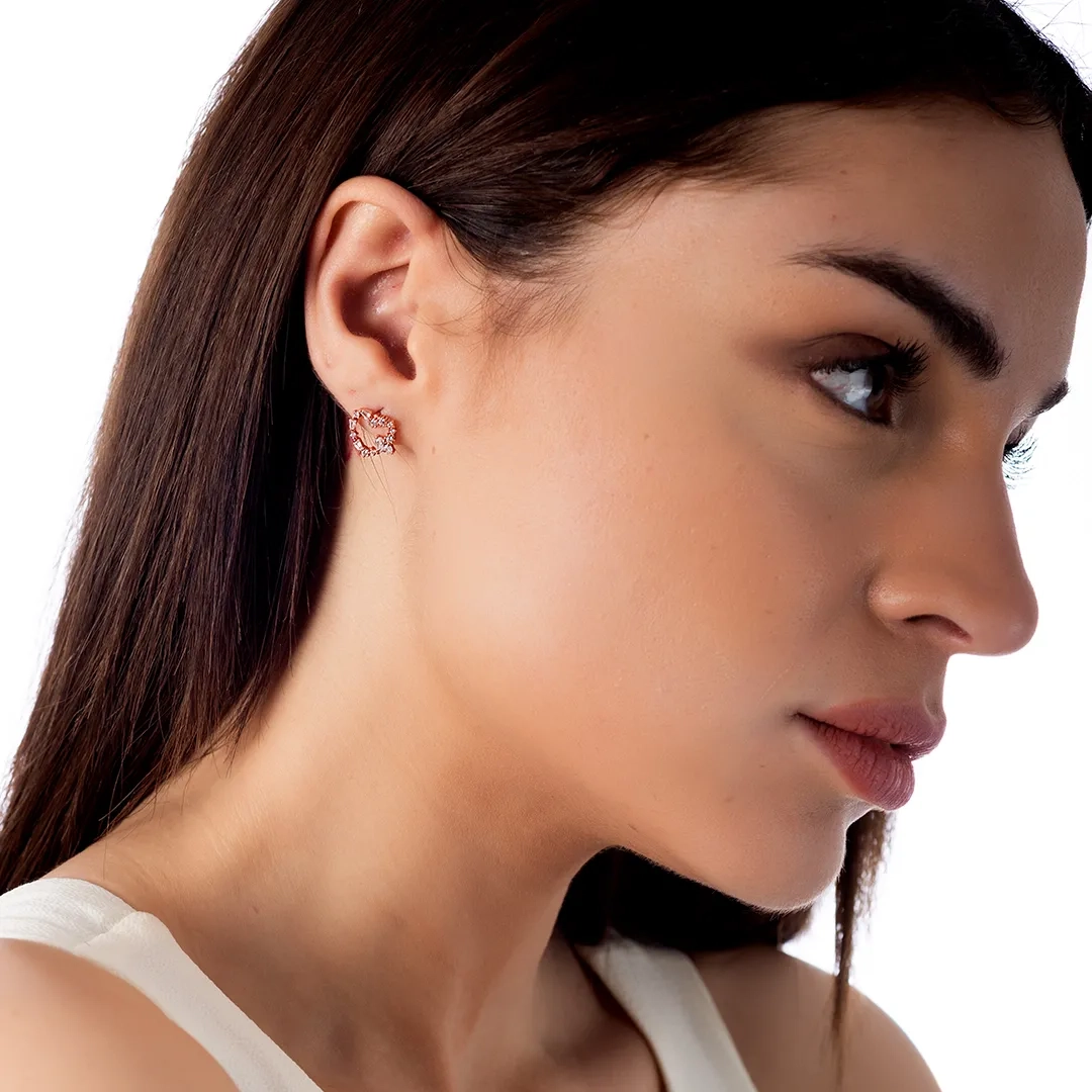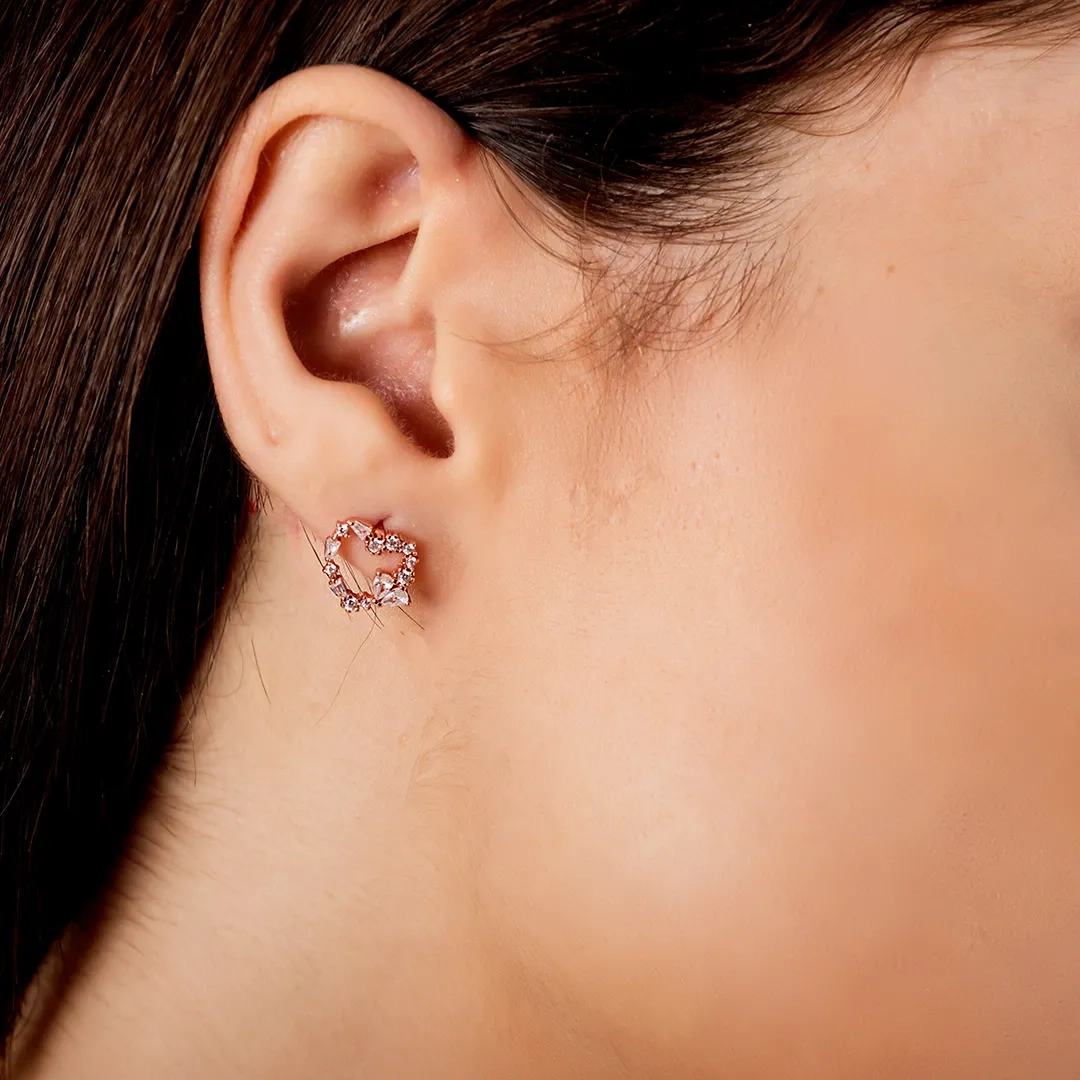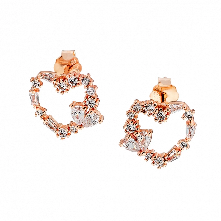 Oxzen σκουλαρίκι ασημένιο καρδιά με λευκά ζιργκόν