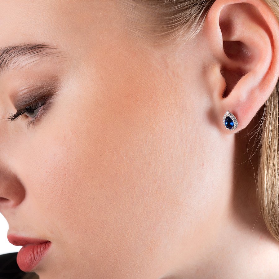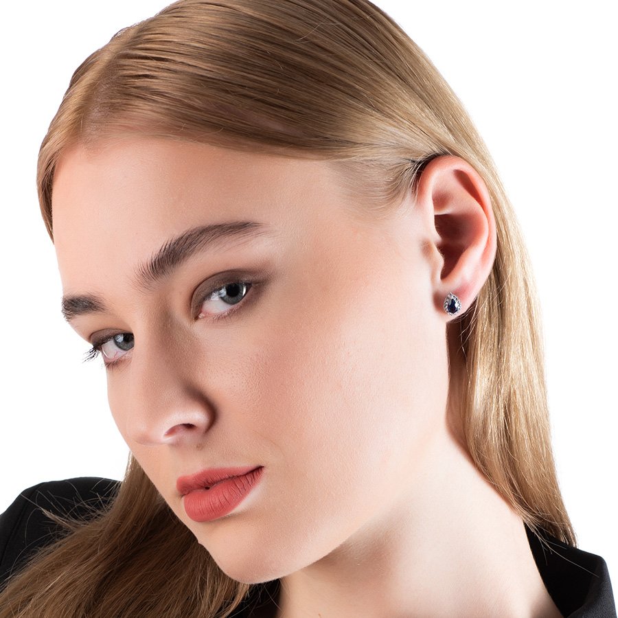 Oxzen σκουλαρίκι ασημένιο καρφωτό με δάκρυ και ζιργκόν