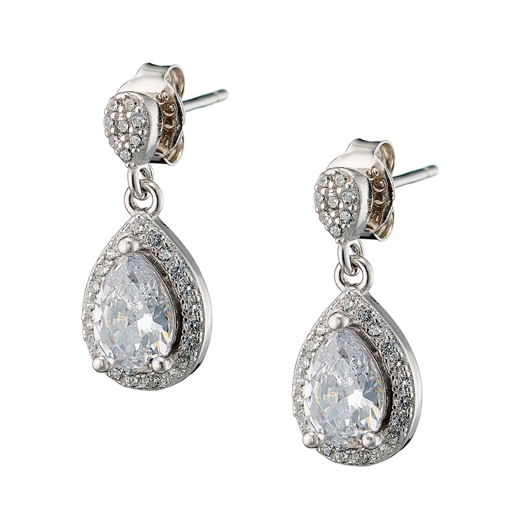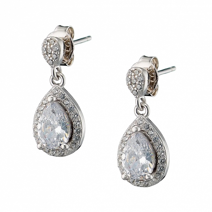 Oxzen σκουλαρίκι ασημένιο κρεμαστό με δάκρυ και λευκά ζιργκόν