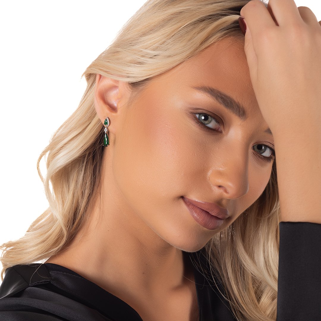 Oxzen σκουλαρίκι ασημένιο κρεμαστό με ζιργκόν