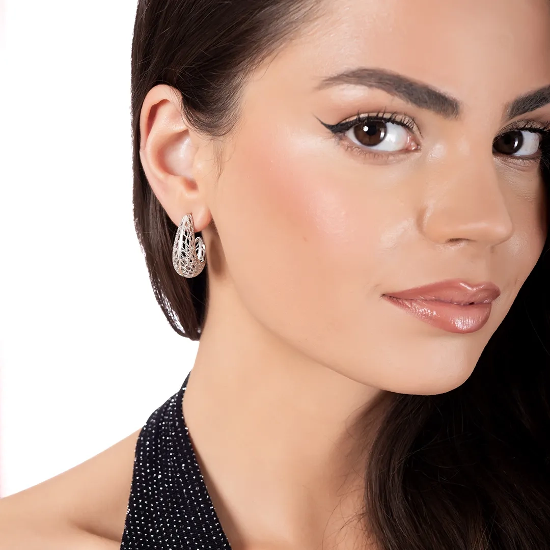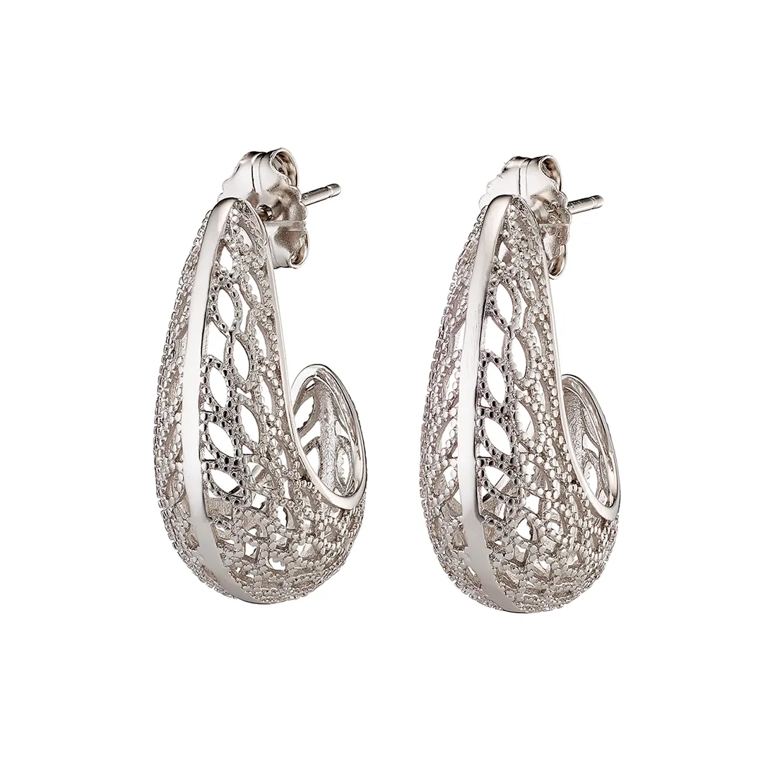 Oxzen σκουλαρίκι ασημένιο κρίκος με ιδιαίτερο σχέδιο