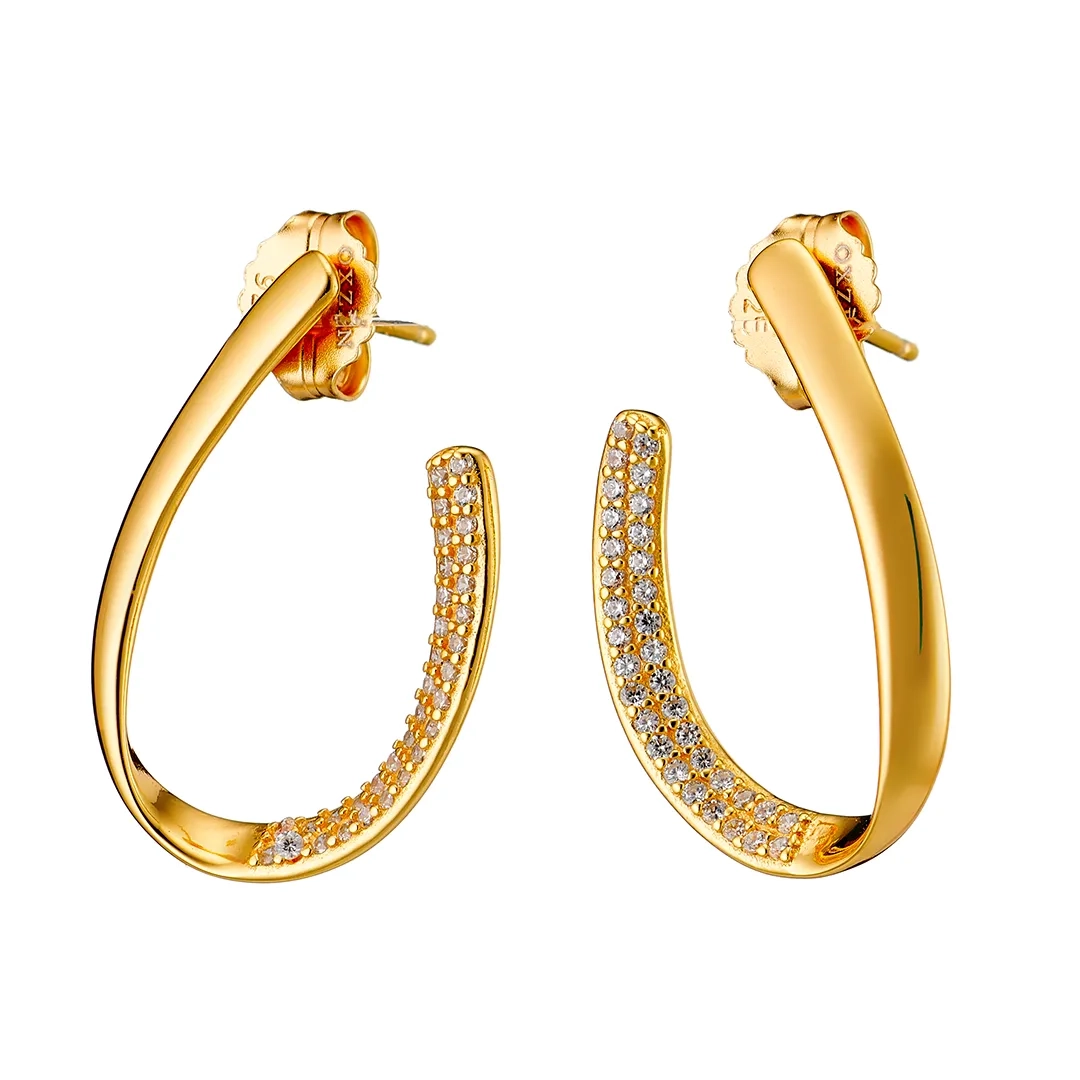 Oxzen σκουλαρίκι ασημένιο κρίκος με λευκά ζιργκόν