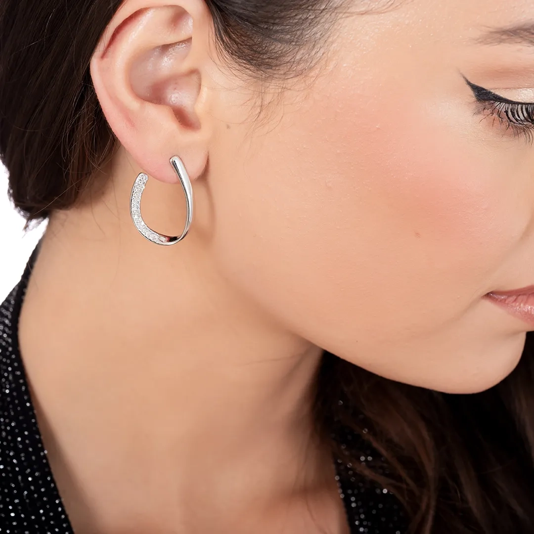 Oxzen σκουλαρίκι ασημένιο κρίκος με λευκά ζιργκόν