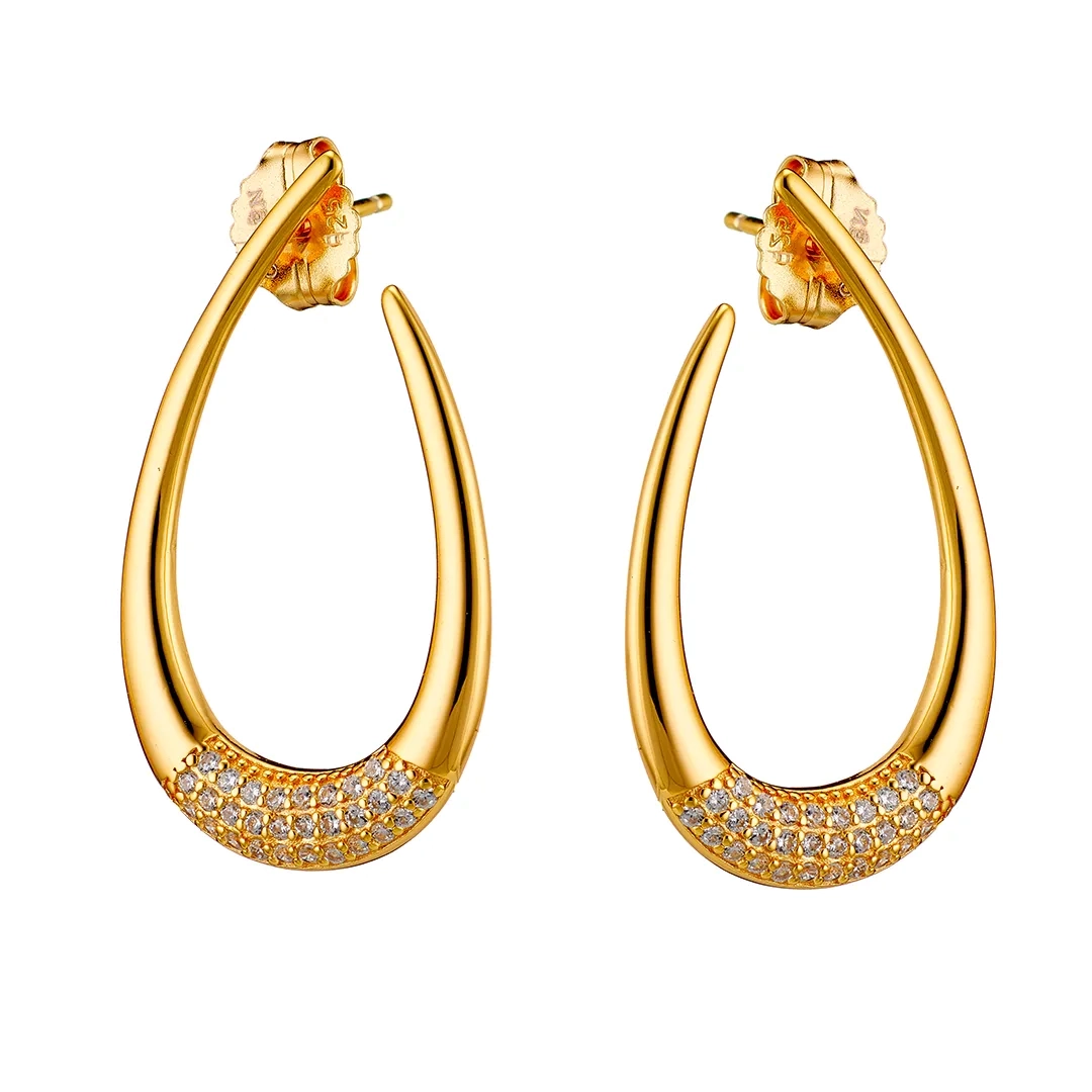 Oxzen σκουλαρίκι ασημένιο κρίκος με λευκά ζιργκόν