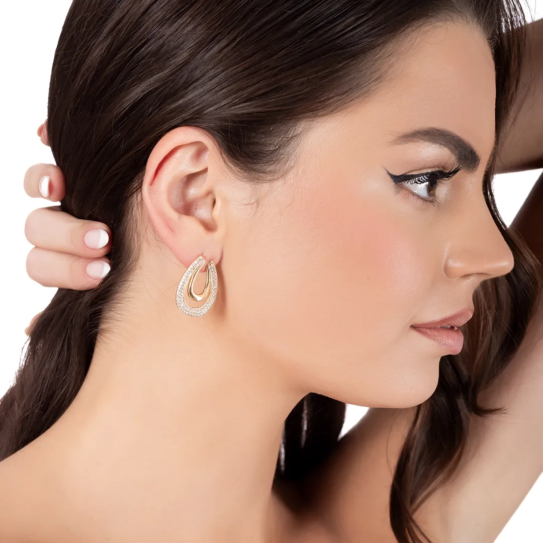 Oxzen σκουλαρίκι ασημένιο με λευκά ζιργκόν