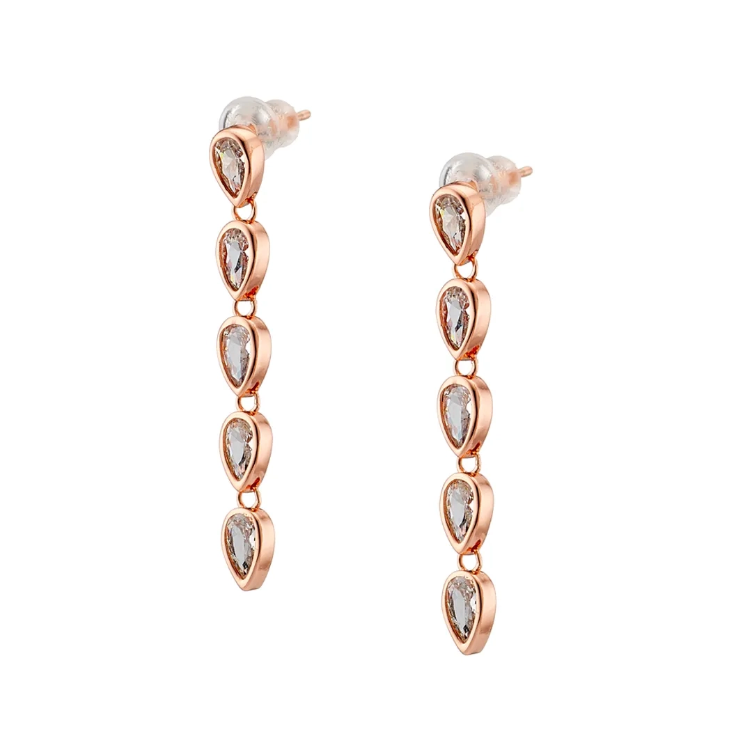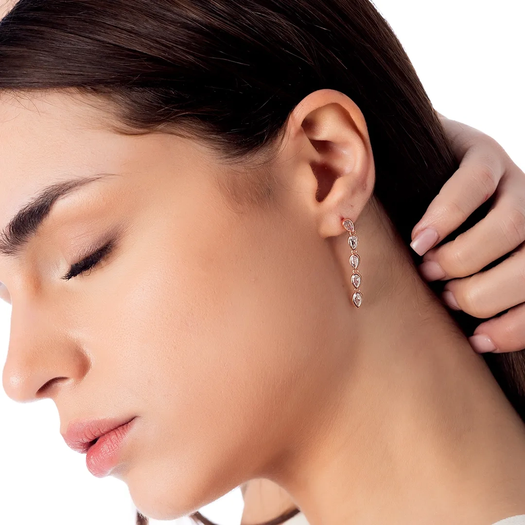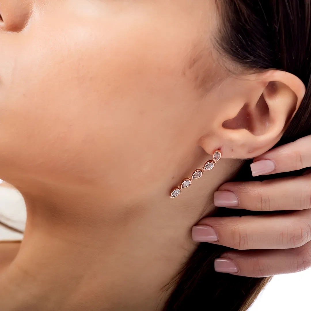 Oxzen σκουλαρίκι ασημένιο με μία σειρά λευκά ζιργκόν
