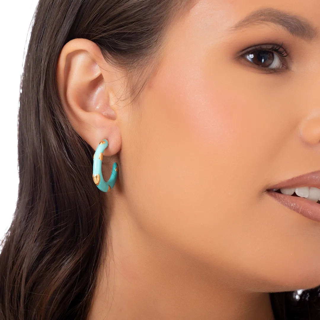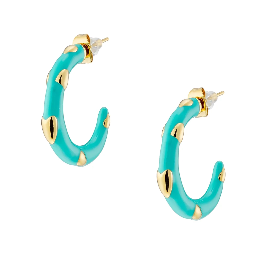 Oxzen σκουλαρίκι ατσάλινο κρίκος με γαλάζιο σμάλτο