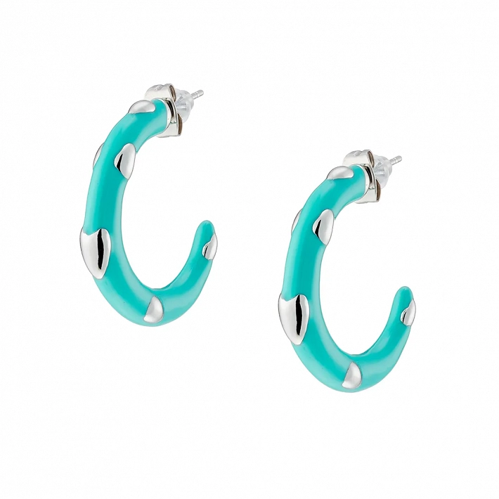 Oxzen σκουλαρίκι ατσάλινο κρίκος με γαλάζιο σμάλτο