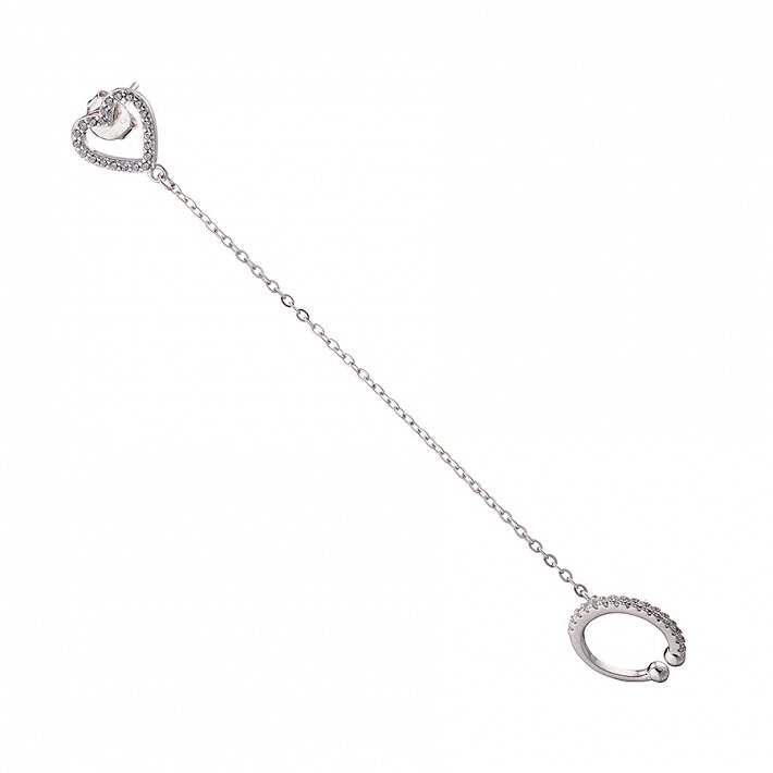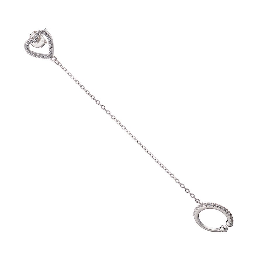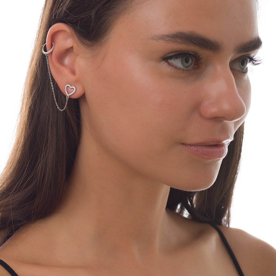 Oxzen σκουλαρίκι κρικάκι μικρό ασημένιο με καρδιά και λευκά ζιργκόν