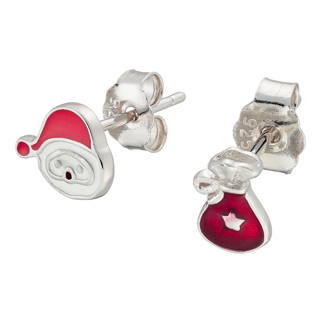 Oxzen σκουλαρίκια καρφωτά ασημένια 925 επιπλατινωμένα χριστουγεννιάτικα Άγιος Βασίλης