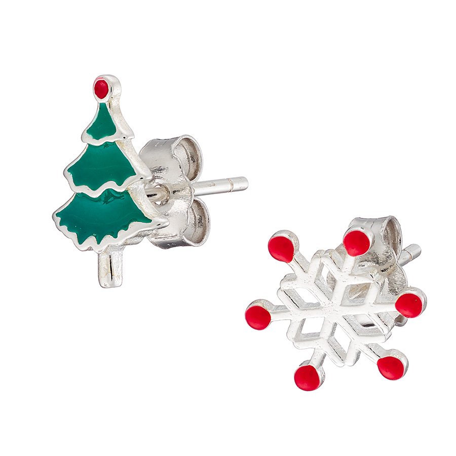 Oxzen σκουλαρίκια καρφωτά ασημένια χριστουγεννιάτικο δέντρο με χιονονιφάδα