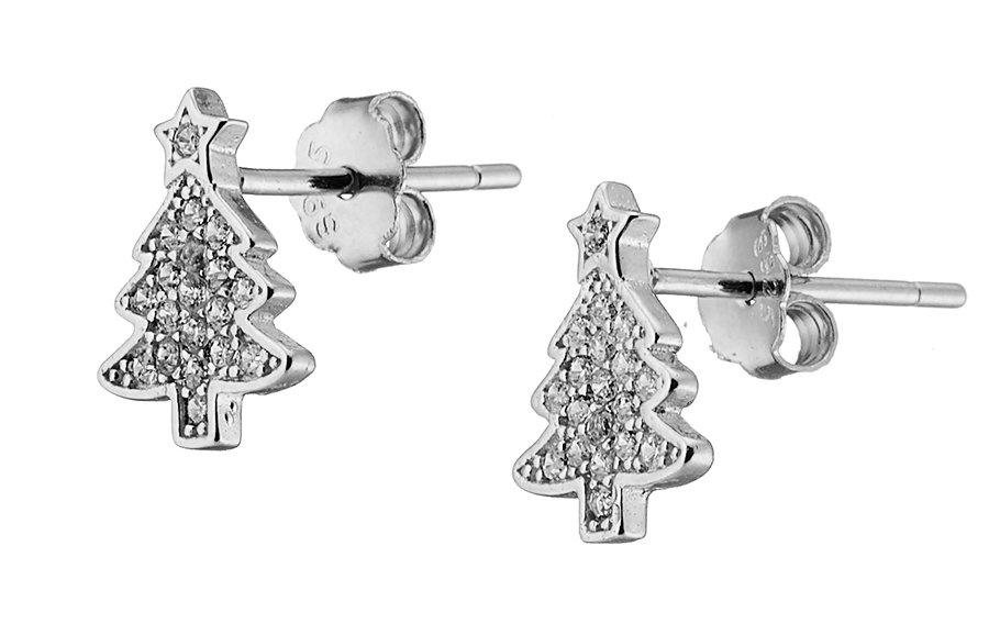 Oxzen σκουλαρίκια καρφωτά ασημένια χριστουγεννιάτικο δέντρο με πέτρες ζιργκόν