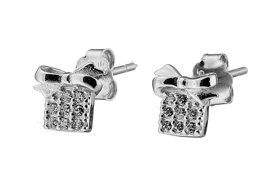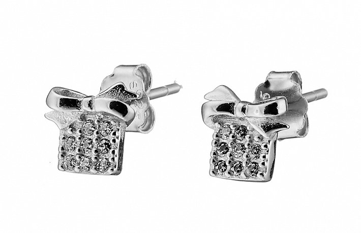 Oxzen σκουλαρίκια καρφωτά ασημένια χριστουγεννιάτικο κουτάκι δώρου με πέτρες ζιργκόν
