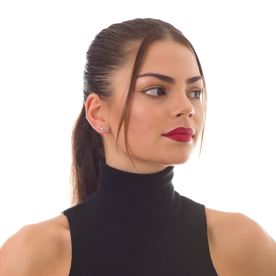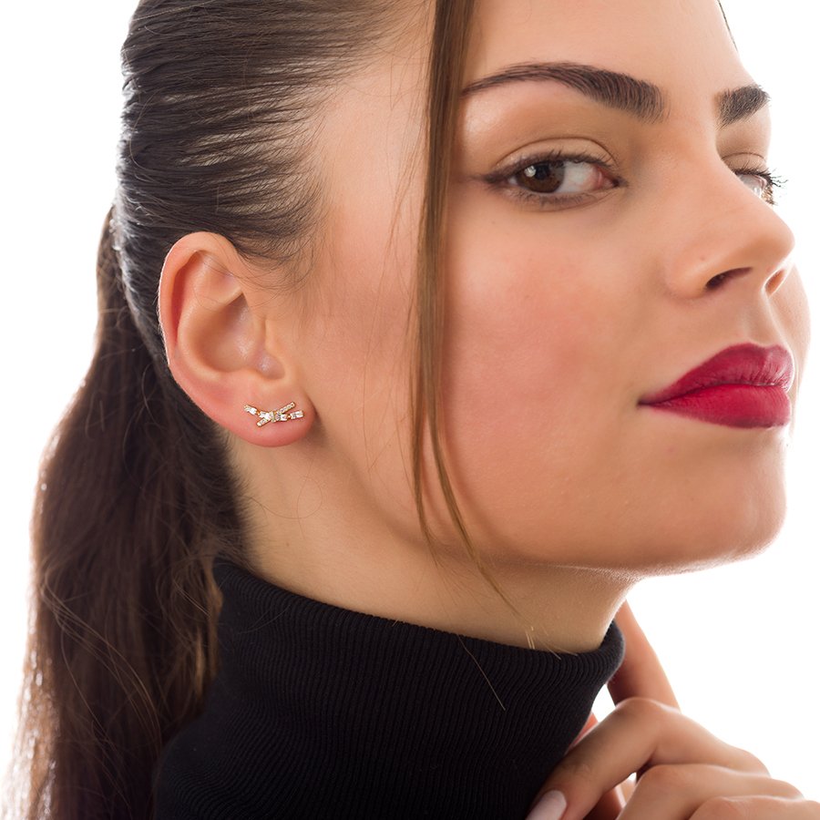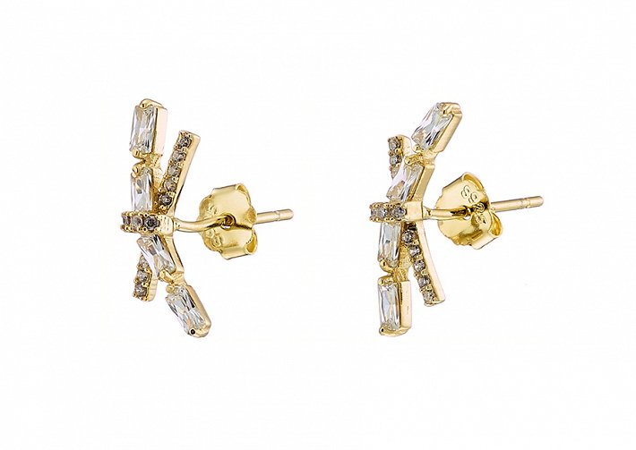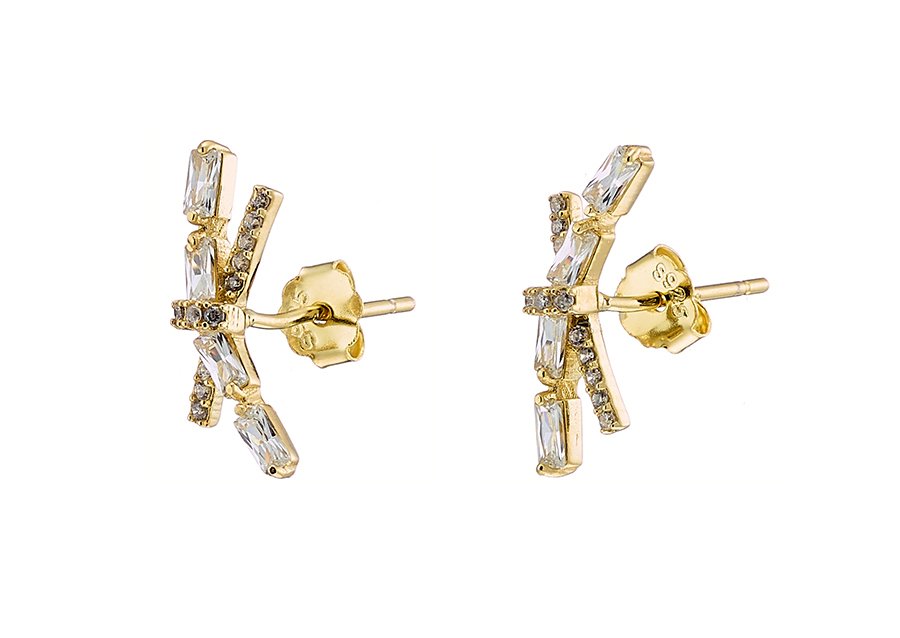 Oxzen σκουλαρίκια καρφωτά ασημένια επιχρυσωμένα διπλό με ζιργκόν