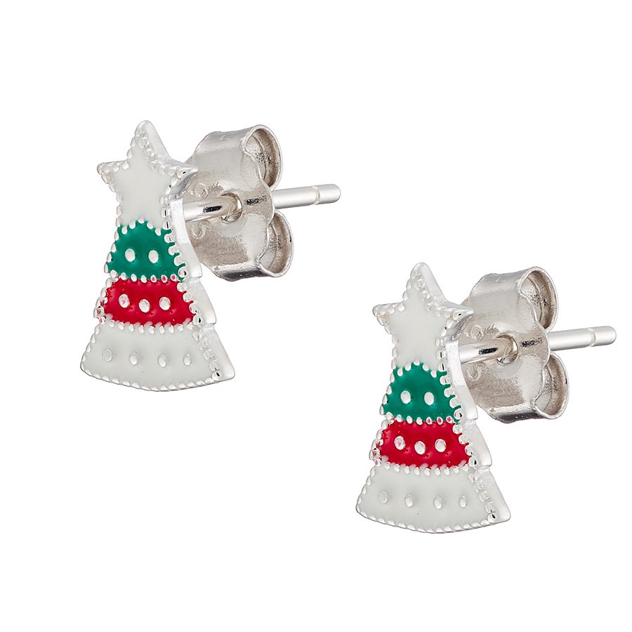 Oxzen σκουλαρίκια καρφωτά ασημένια επιπλατινωμένα χριστουγεννιάτικο δέντρο
