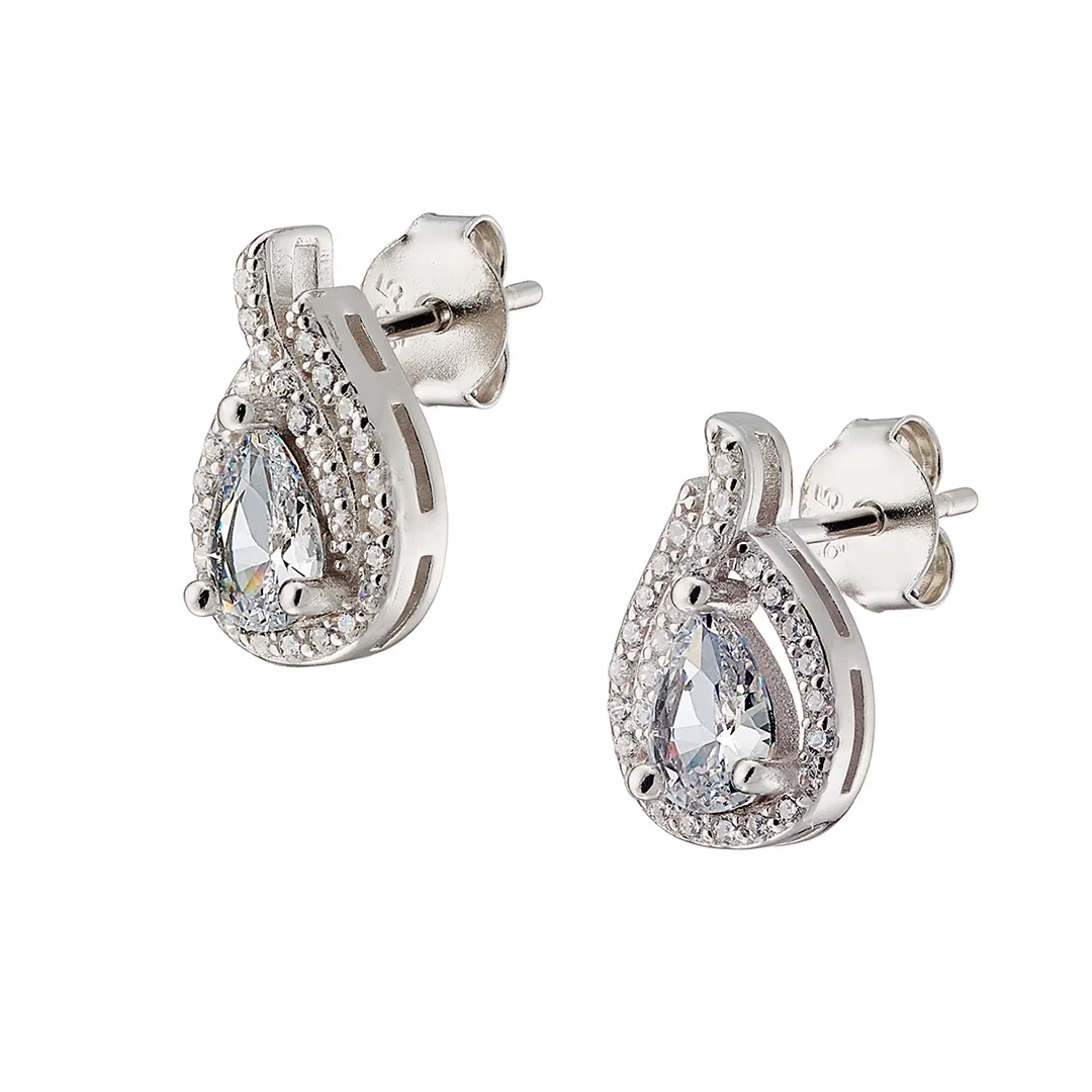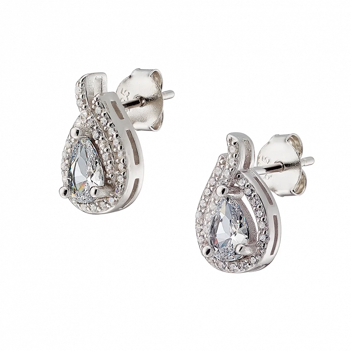 Oxzen σκουλαρίκια καρφωτά ασημένια φλόγα με ζιργκόν