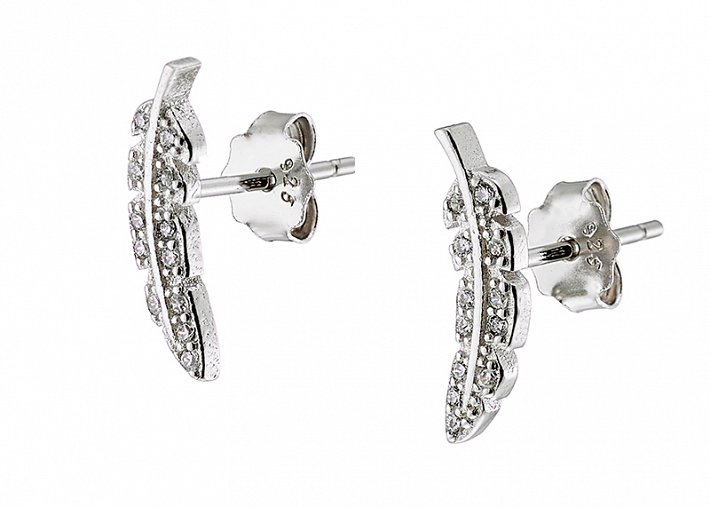 Oxzen σκουλαρίκια καρφωτά ασημένια φύλλο με λευκά ζιργκόν