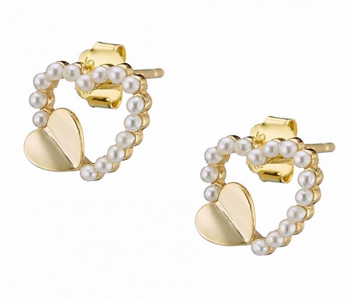 Oxzen σκουλαρίκια καρφωτά ασημένια καρδιά με περλίτσες
