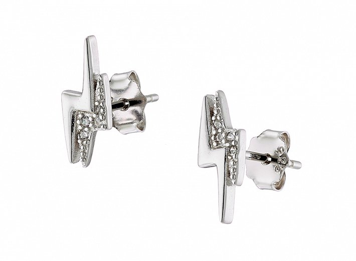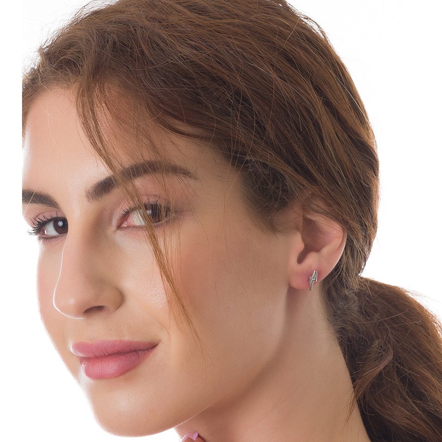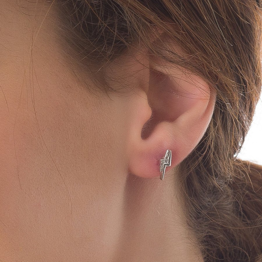 Oxzen σκουλαρίκια καρφωτά ασημένια κεραυνός με λευκά ζιργκόν