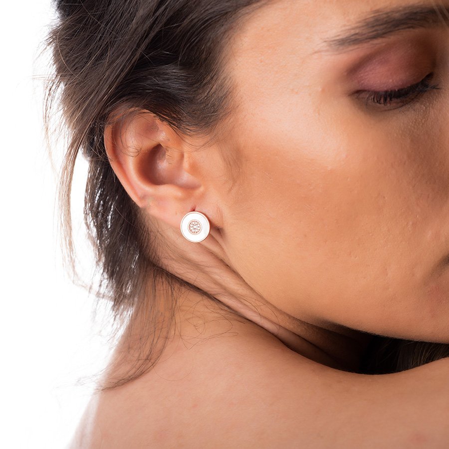 Oxzen σκουλαρίκια καρφωτά ασημένια κύκλος με φίλντισι και πέτρες ζιργκόν