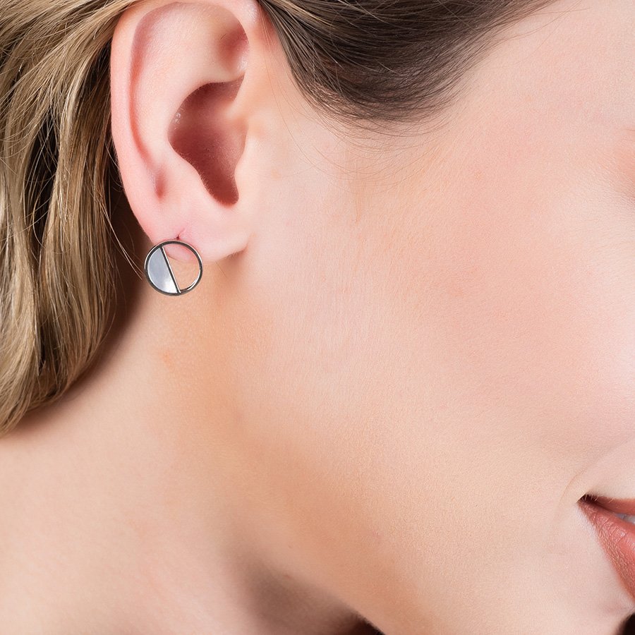 Oxzen σκουλαρίκια καρφωτά ασημένια με φίλντισι
