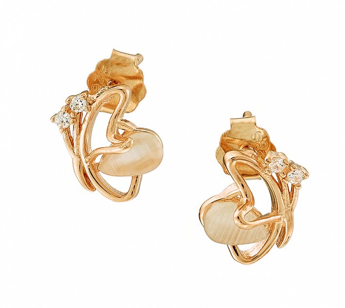 Oxzen σκουλαρίκια καρφωτά ασημένια με φίλντισι και λευκά ζιργκόν