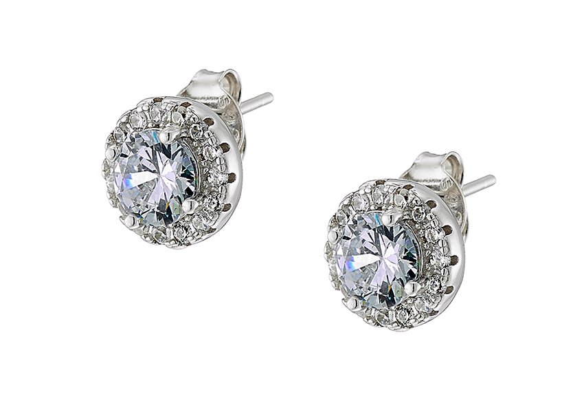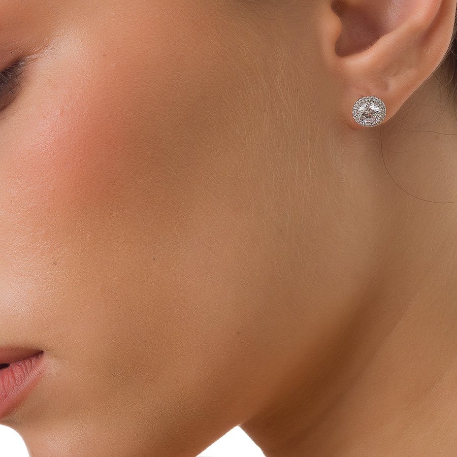Oxzen σκουλαρίκια καρφωτά ασημένια με λευκά ζιργκόν