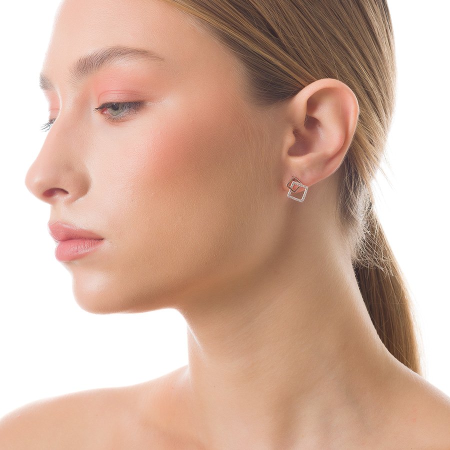 Oxzen σκουλαρίκια καρφωτά ασημένια με λευκά ζιργκόν