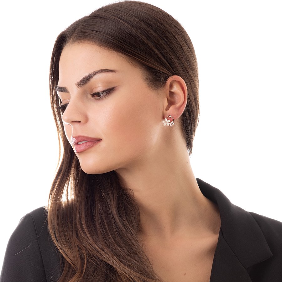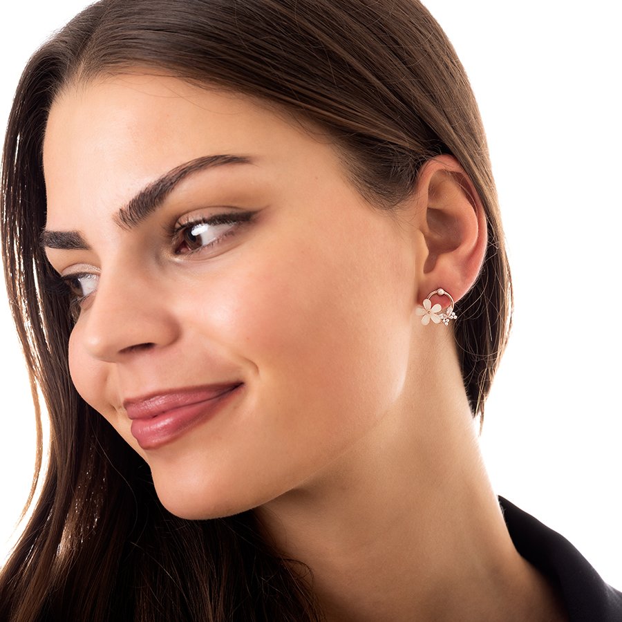 Oxzen σκουλαρίκια καρφωτά ασημένια με μαργαρίτα και πέτρες ζιργκόν