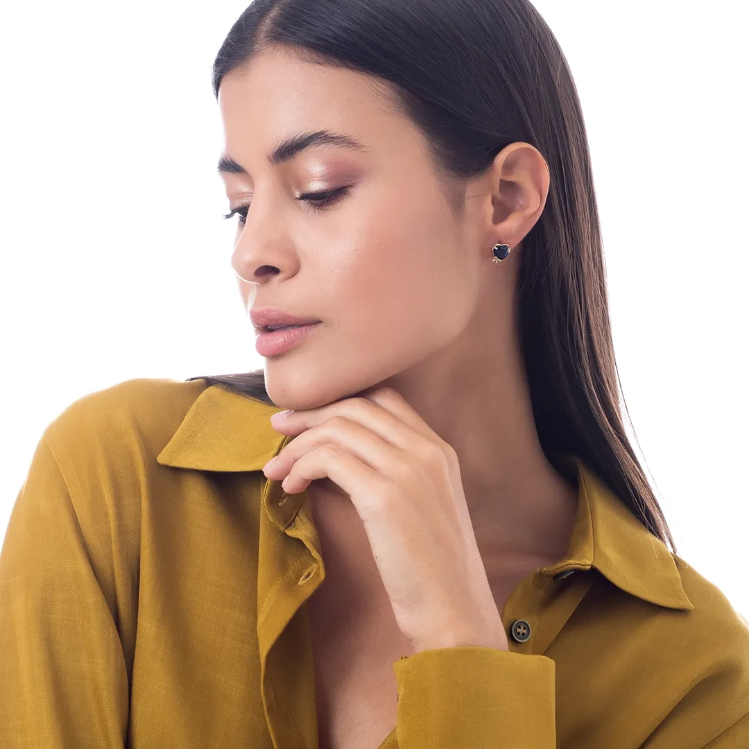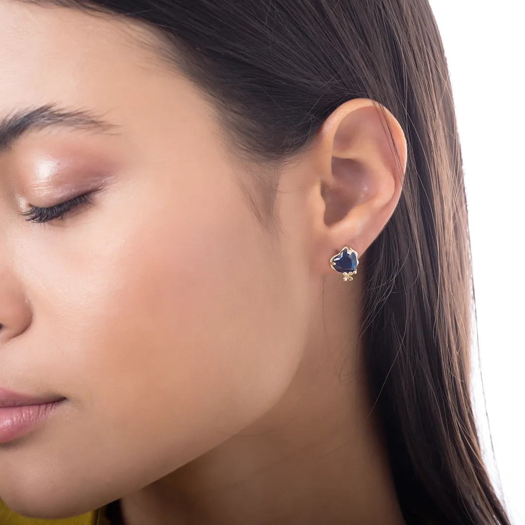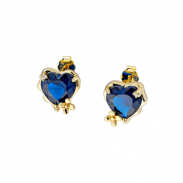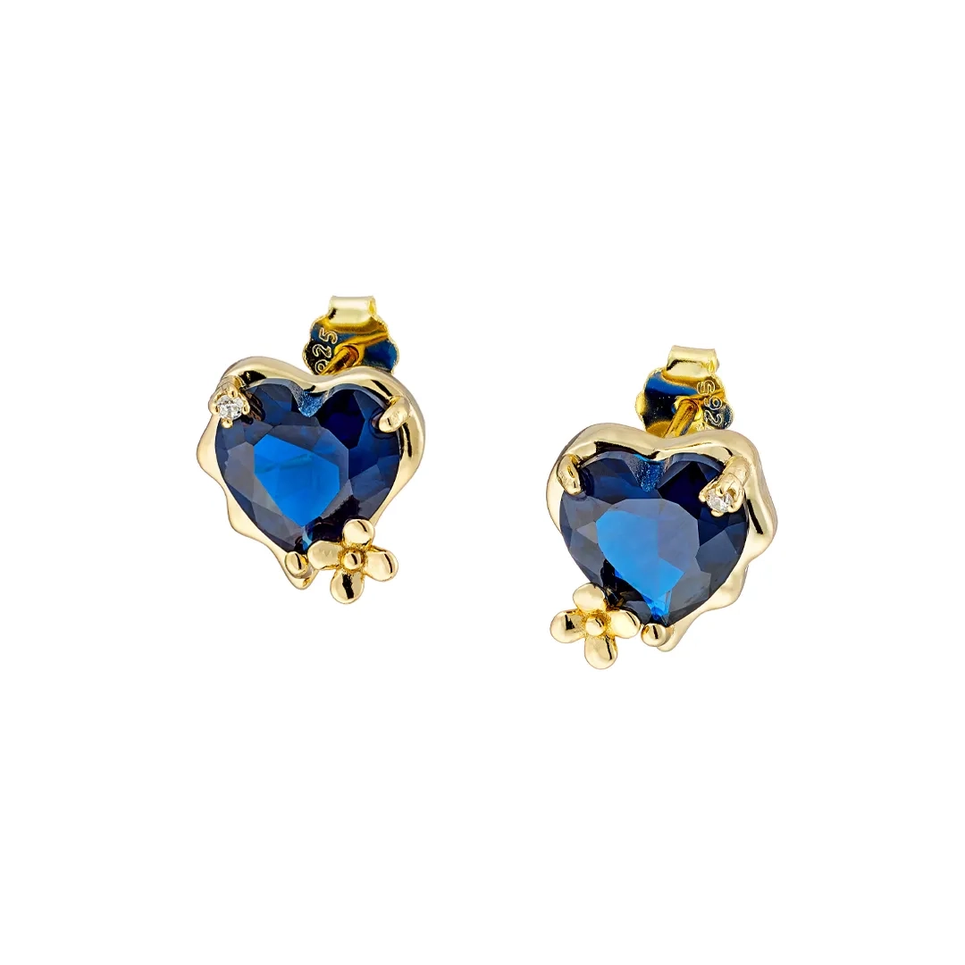 Oxzen σκουλαρίκια καρφωτά ασημένια με μπλε καρδιά