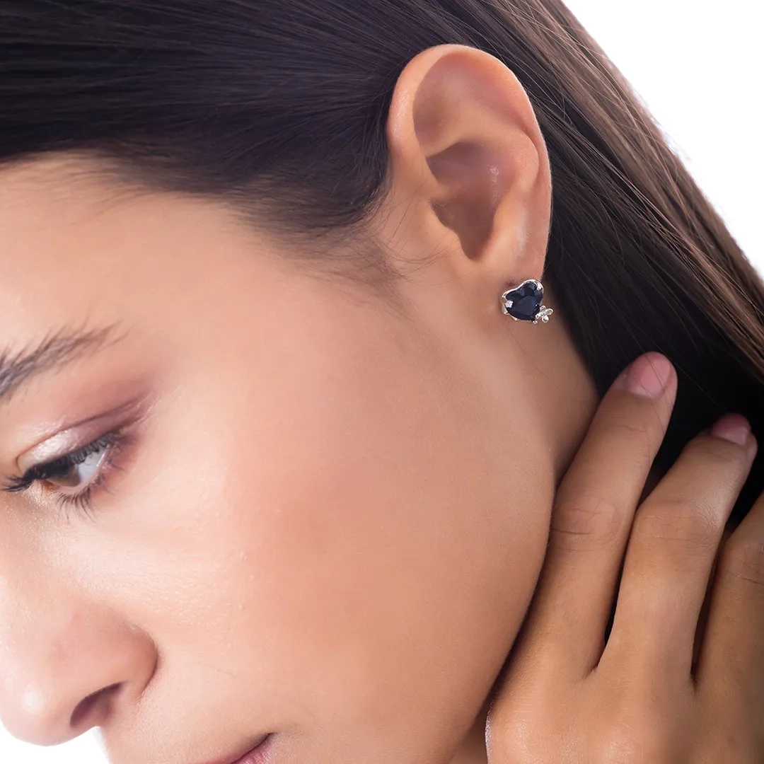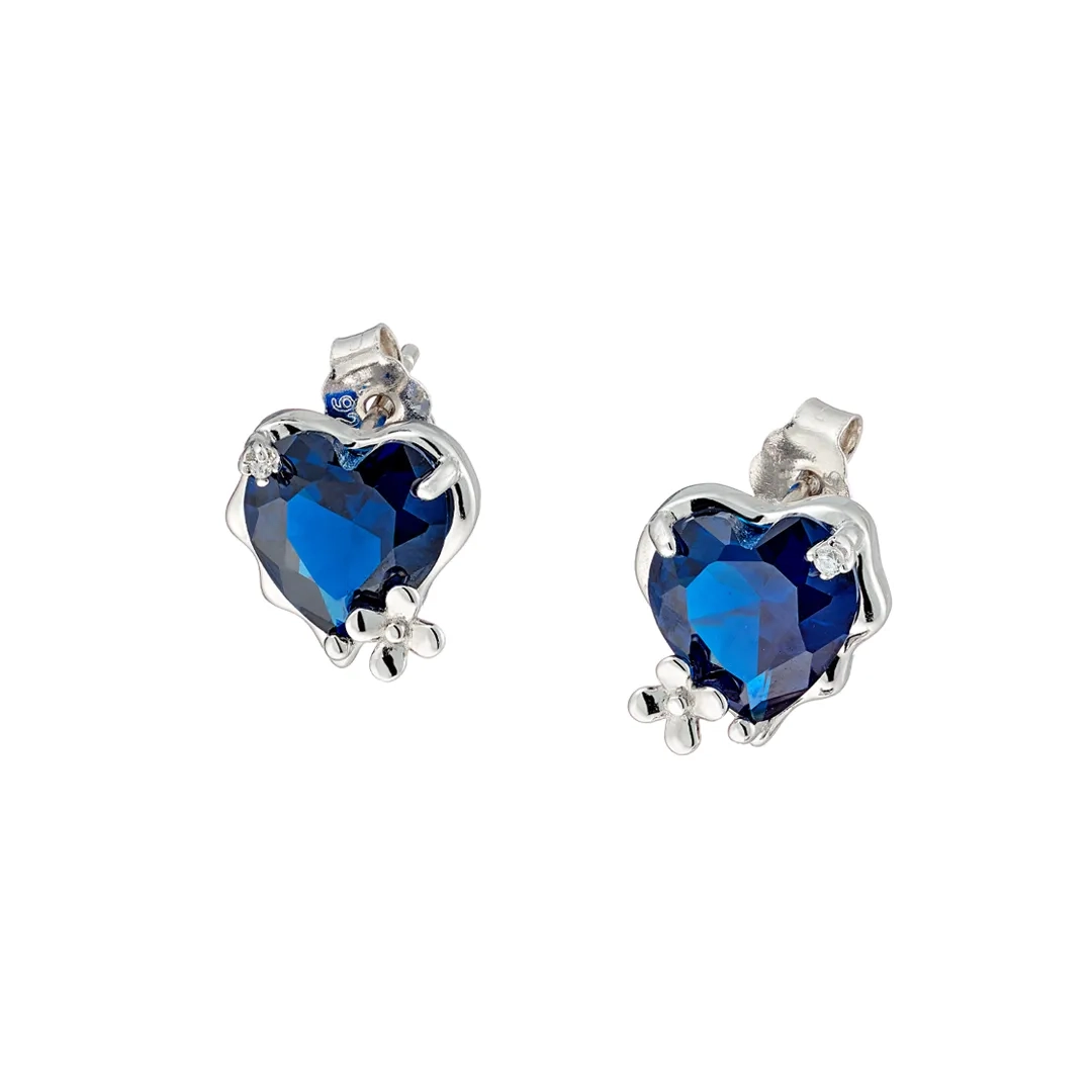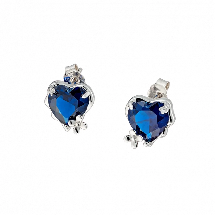 Oxzen σκουλαρίκια καρφωτά ασημένια με μπλε καρδιά