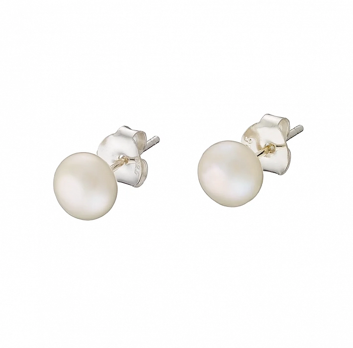 Oxzen σκουλαρίκια καρφωτά ασημένια με πέρλα Majorica 5mm