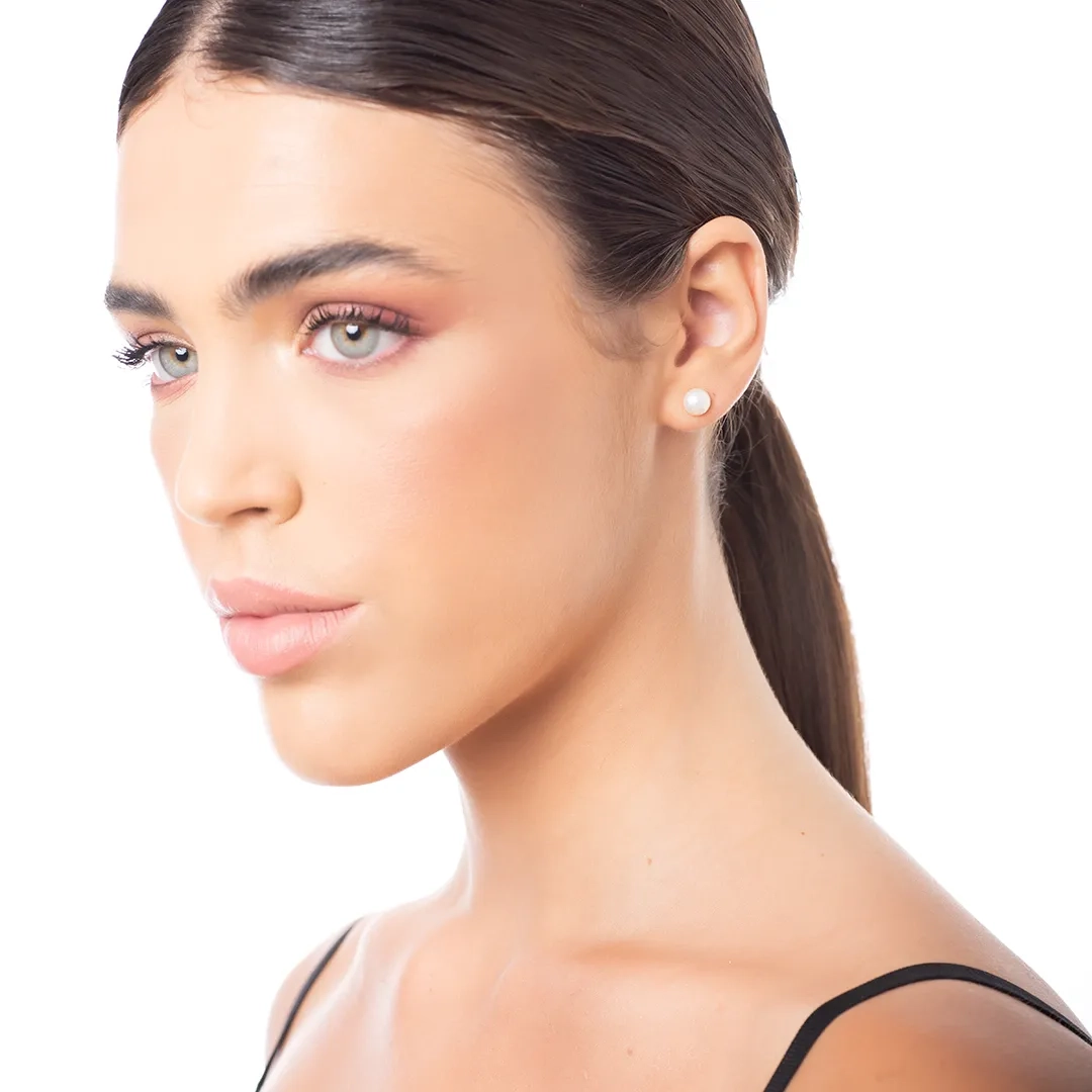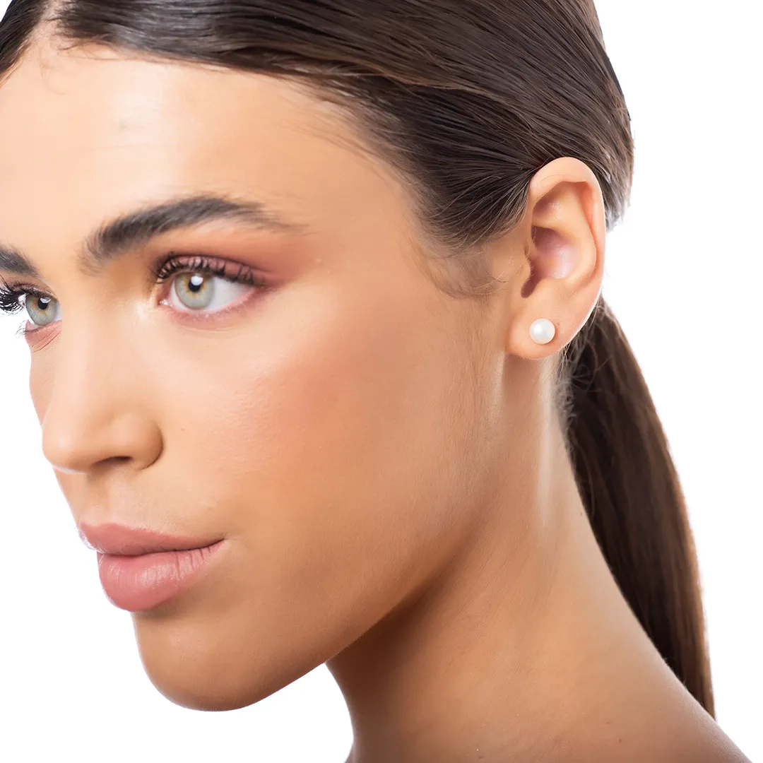 Oxzen σκουλαρίκια καρφωτά ασημένια με πέρλα Majorica 6mm