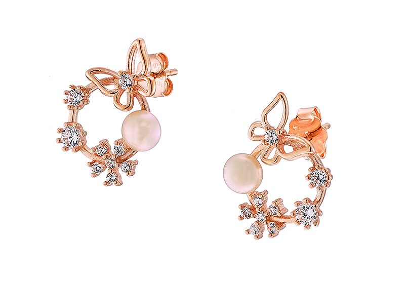 Oxzen σκουλαρίκια καρφωτά ασημένια με πέρλες και λευκά ζιργκόν