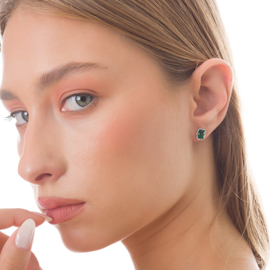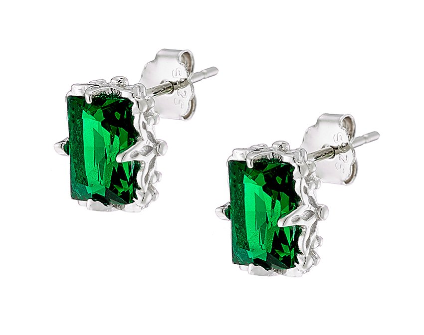Oxzen σκουλαρίκια καρφωτά ασημένια με πράσινη πέτρα ζιργκόν
