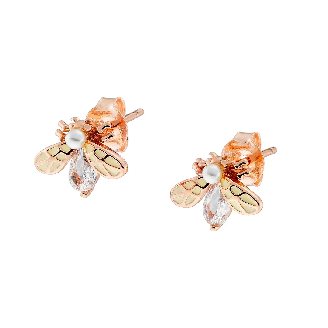 Oxzen σκουλαρίκια καρφωτά ασημένια μέλισσα με ένα λευκό ζιργκόν