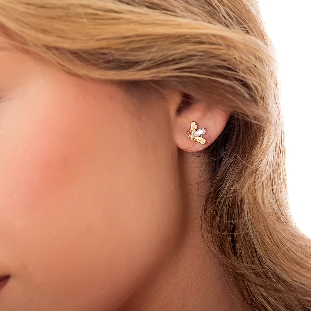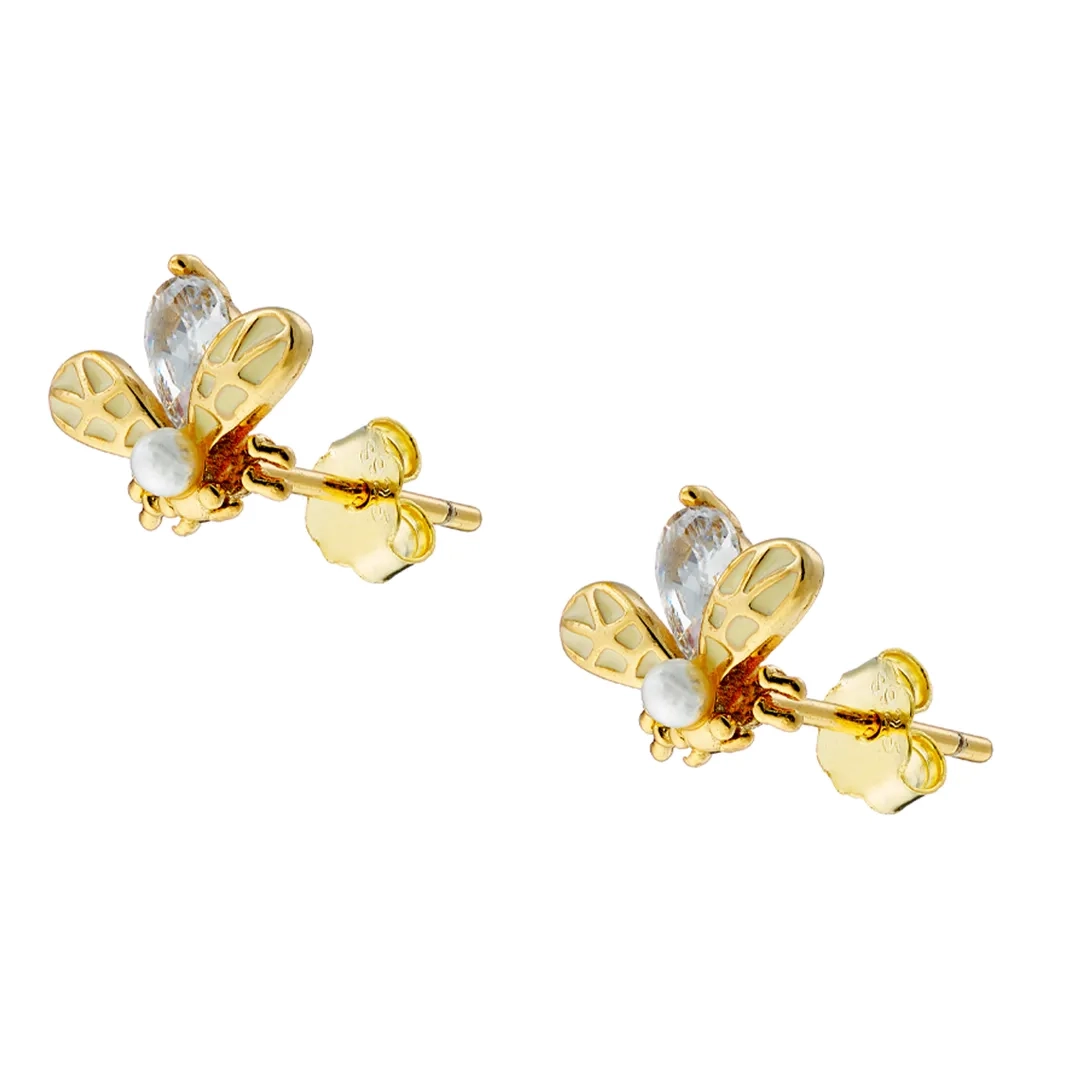 Oxzen σκουλαρίκια καρφωτά ασημένια μέλισσα με ένα λευκό ζιργκόν
