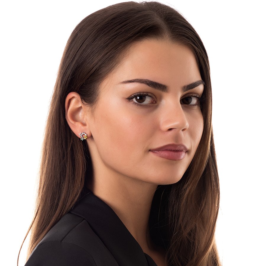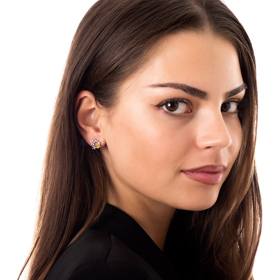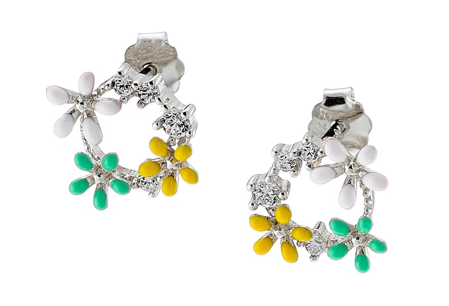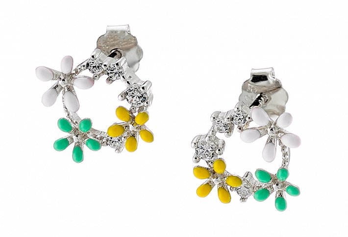 Oxzen σκουλαρίκια καρφωτά ασημένια στεφανάκι με λουλούδια