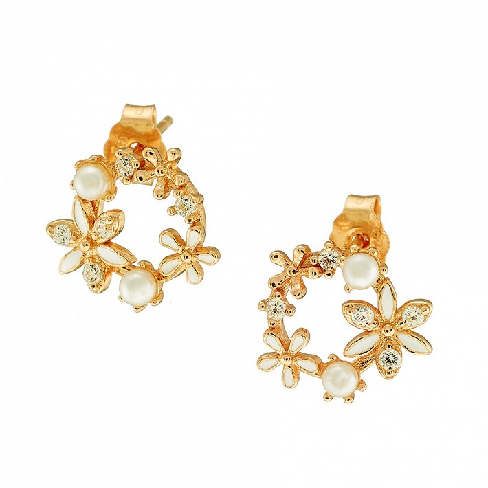 Oxzen σκουλαρίκια καρφωτά ασημένια στεφανάκι με πέρλες και πέτρες ζιργκόν
